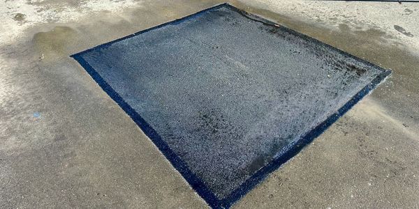 Patch repair involves installing new asphalt over a section of pavement that has been cut out and prepared for resurfacing. In the case of larger patches—such as repairing a sunken or cracked section of a car park or roadway—the damaged asphalt is removed, the base is re-compacted if needed, and new asphalt is laid to restore a smooth, level surface. When completed to standard, these larger patch repairs can last 10 years or more.